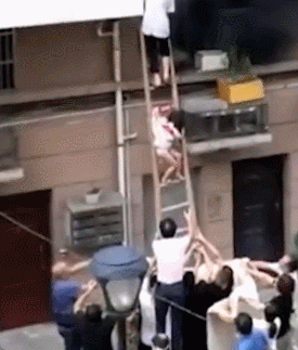 將梯子舉起救人