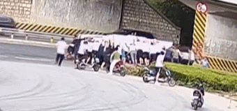 眾人合力抬車