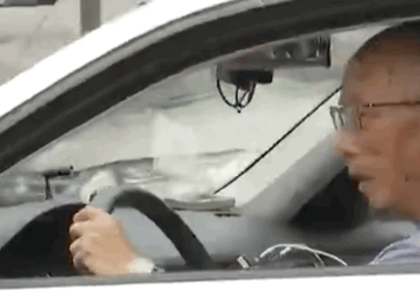 視頻中一名老人在學習小型汽車駕駛