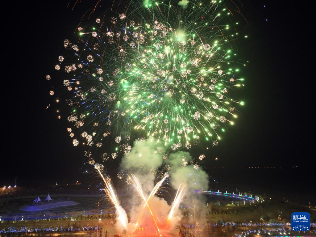 2月5日,在甘肅省酒泉市阿克塞哈薩克族自治縣舉行的“多彩阿克塞、好客哈薩克”煙花秀上,市民在焰火盛宴中度過美好的元宵之夜。