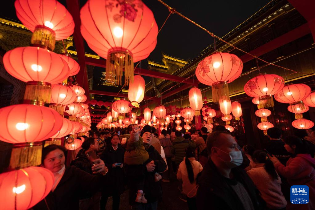 2月5日,市民在貴州省銅仁市中南門歷史文化旅游區逛廟會。