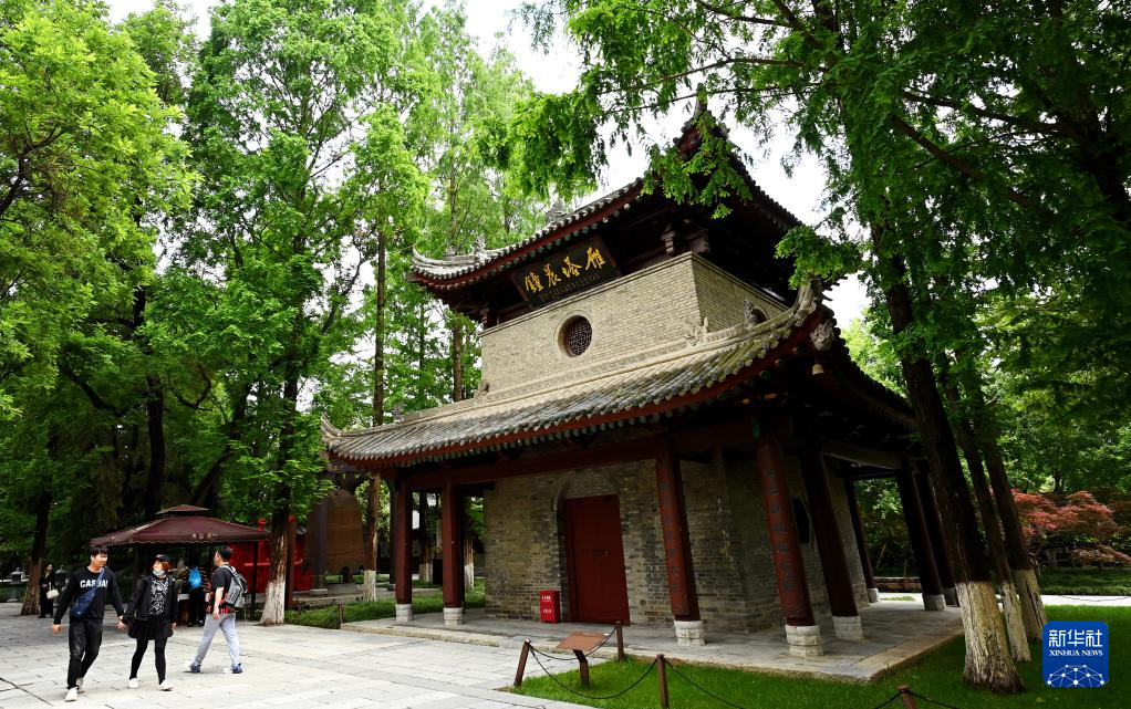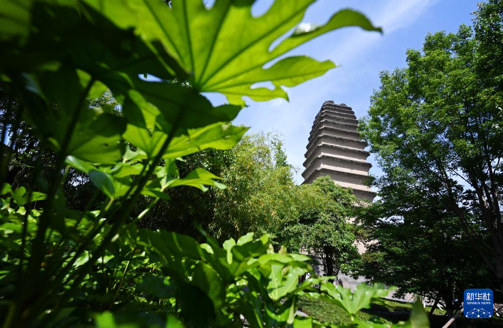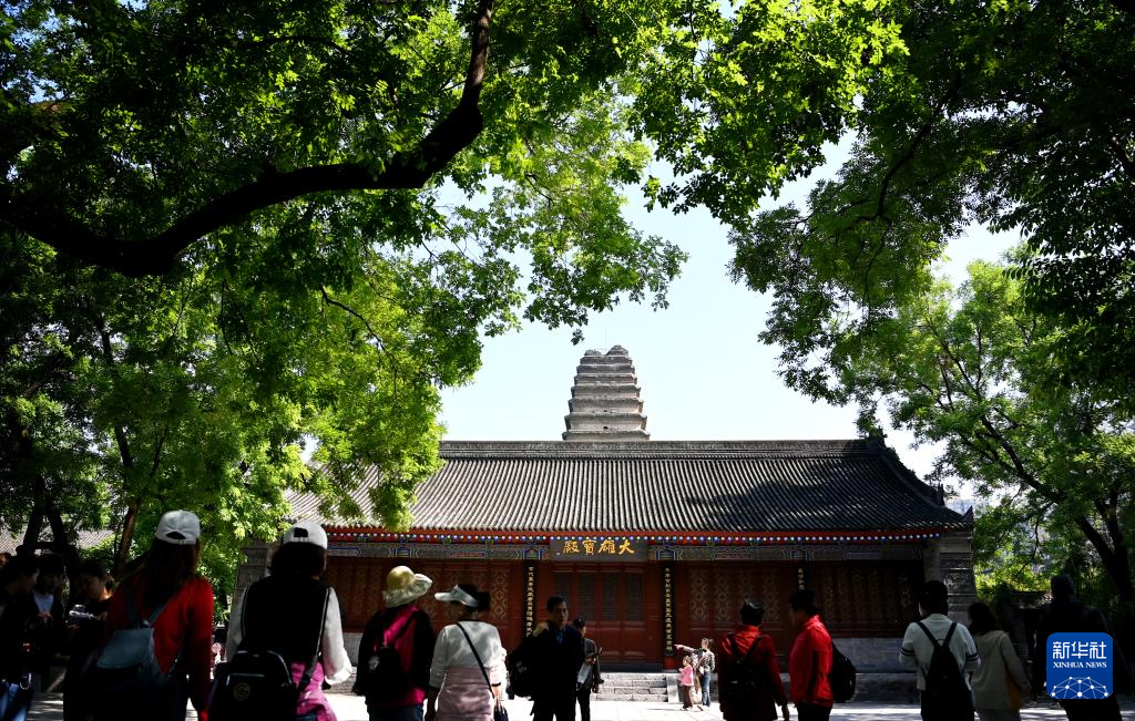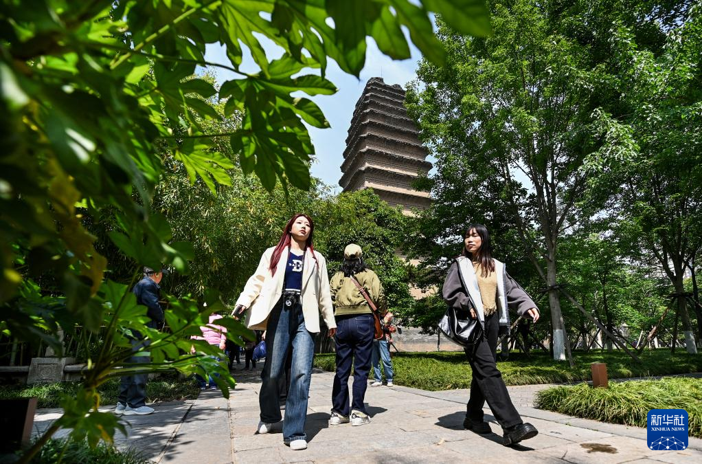 游客在西安薦福寺內參觀游覽(5月8日攝)。
