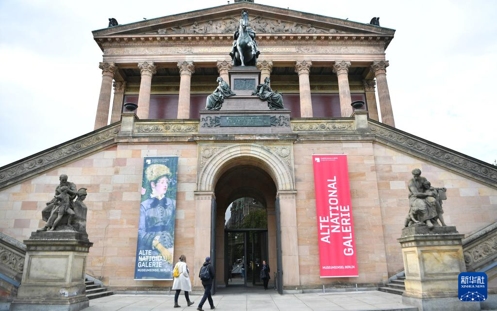 5月16日,在德國柏林博物館島,人們參觀老國家美術館。