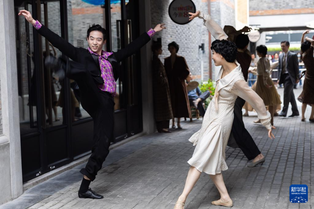 當日,上海芭蕾舞團沉浸式海派實景版芭蕾舞劇《花樣年華》在虹口區四川北路的海派潮流地標“今潮8弄”上演。