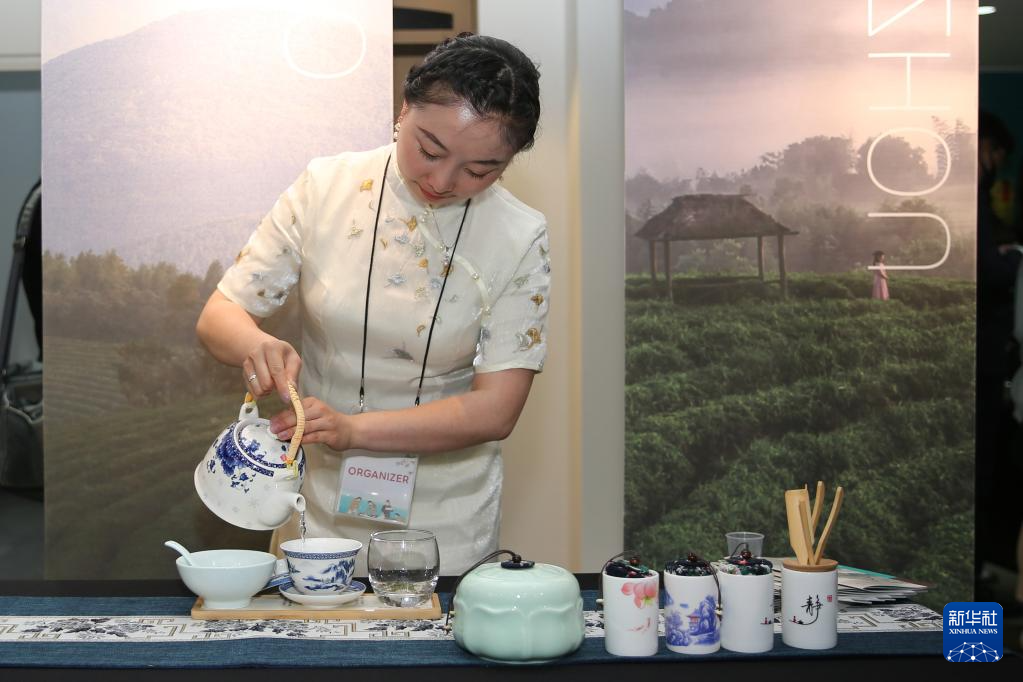 5月23日,工作人員在韓國首爾中國文化中心舉行的“茶和天下·雅集”活動中泡茶。