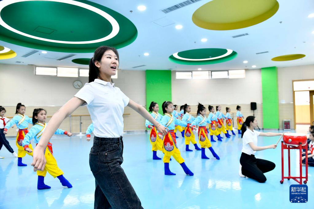 5月23日,在濟南市歷城二中聞韶藝術館,于恩賜老師帶著同學們在練習舞蹈。