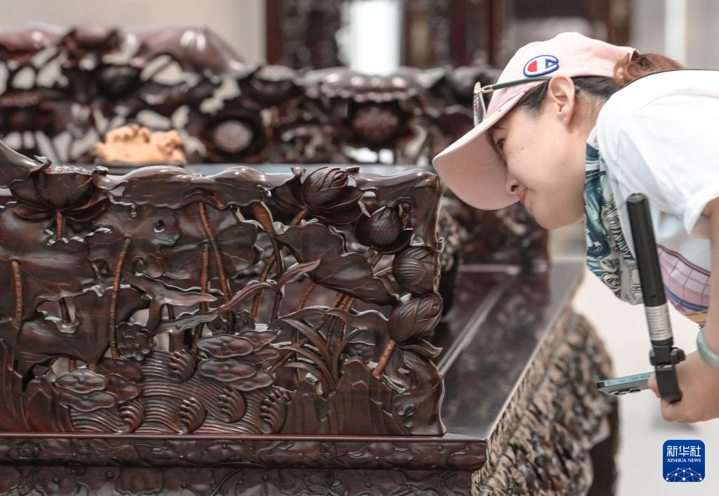 當日,“心·傳——陳玉樹新時代古典家具藝術展”在位于北京的中國工藝美術館、中國非物質文化遺產館舉辦,展出了高級工藝美術師陳玉樹近年創作的20套古典家具,展現出中國木作技藝之美。