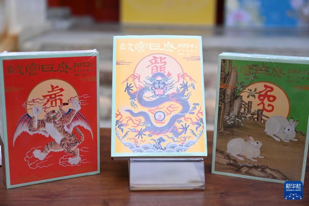 這是在故宮拍攝的2022年、2023年、2024年《故宮日歷》(9月19日攝)。