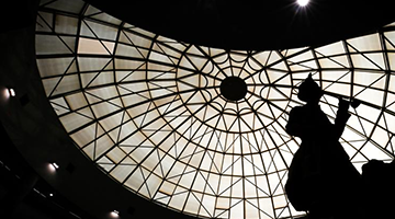 參觀者在遼寧省博物館觀看墨西哥古代文明展展出的文物(11月3日攝)。