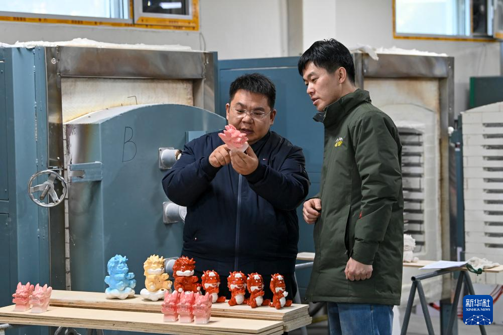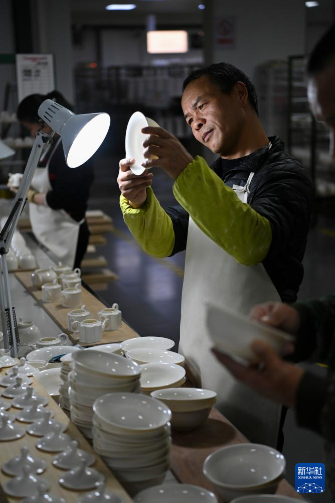 在位于山西省長治市上黨區紅綠彩村的生產基地內,工作人員在檢查瓷器有無瑕疵(1月3日攝)。