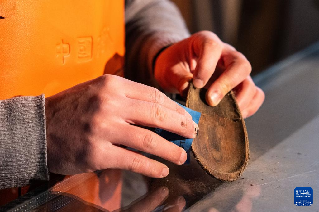 2月28日,郝冠雄在打磨茶則木胎。