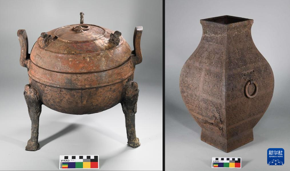 這是安徽淮南武王墩主墓內出土的部分青銅器。