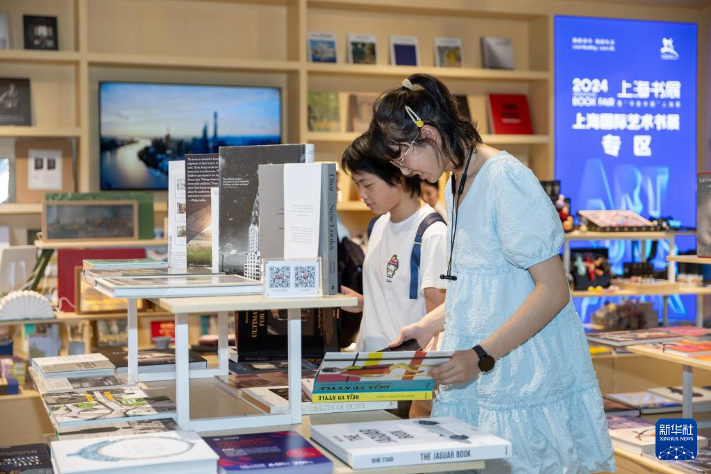 8月14日,人們在上海國際藝術書展專區翻閱書籍。