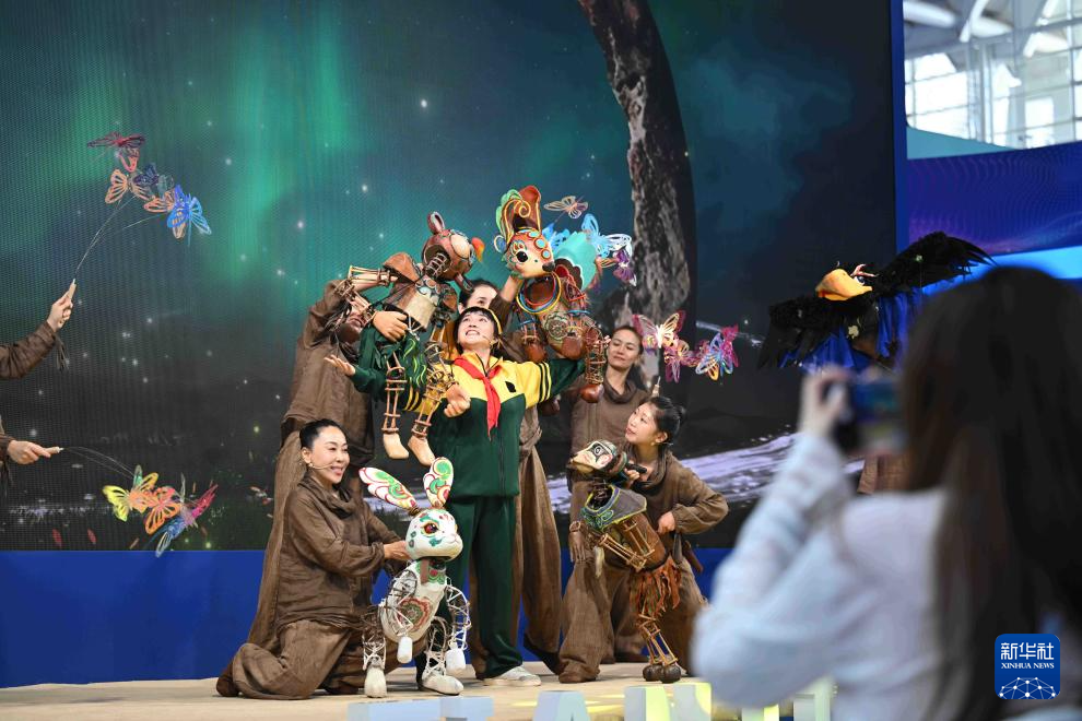 9月13日,在國家會展中心(天津),中國首部XR數字音樂兒童劇《敦煌·九色鹿王》在博覽會天津河西展區表演。