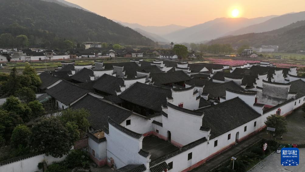 3月25日拍攝的夕陽下的周家大院“子巖府”(無人機照片)。