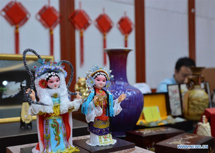 Photo taken on March 23, 2018 shows the handicrafts exhibition held during the Lancang-Mekong Cooperation (LMC) Week in Vientiane, Laos. Over 200 representatives from the Lao foreign ministry, ASEAN (Association of Southeast Asian Nations) embassies and other foreign embassies and missions participated in the event, which includes a photo and handicrafts exhibition, seminar and a food festival of the six Lancang-Mekong countries. (Xinhua/Liu Ailun)