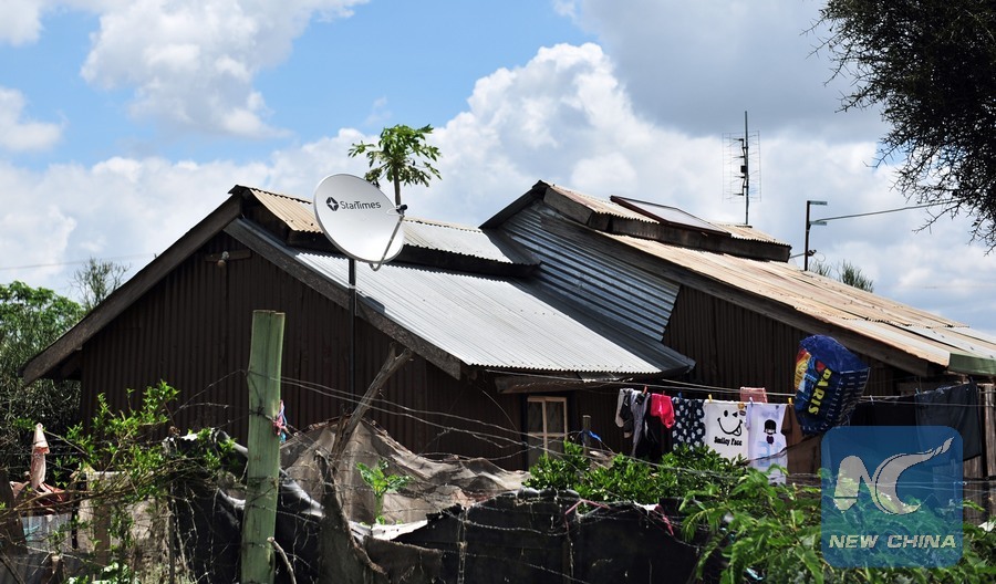 File photo taken on Nov. 30, 2016 shows a local house with a satellite digital television device provided by Chinese media company StarTimes in Kenya. The company launched a satellite digital television project in Kenya to bridge rural-urban information gap in the East African nation. (Xinhua/Li Baishun)