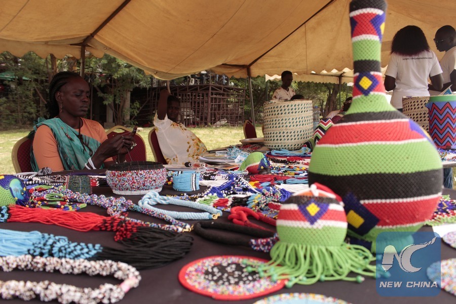 South Sudanese artists display artifacts during the Hagana Festival in Juba, capital of South Sudan, May 19, 2018. The two-day event aimed at celebrating South Sudan's cultural diversity and also to promote peace in the war-torn country. (Xinhua/Gale Julius)