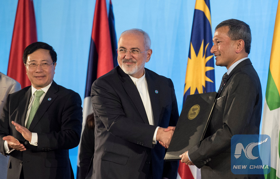Iran's Foreign Minister Mohammad Javad Zarif (center) attends the signing ceremony of the Instrument of Accession to the Treaty of Amity and Cooperation in Southeast Asia (TAC) at the ASEAN Foreign Ministers' Meeting in Singapore August 2, 2018. (Reuters photo)