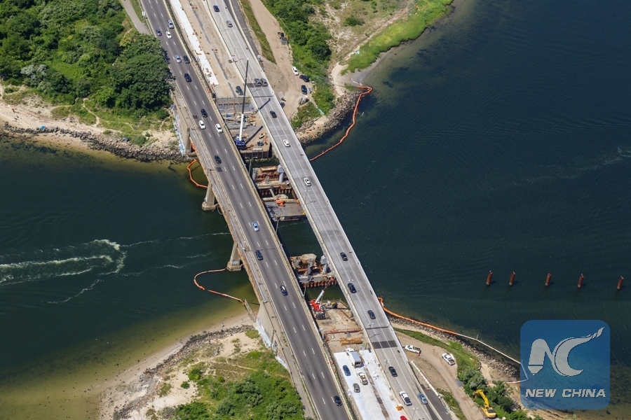 File Photo: Photo taken on July 19, 2016 shows the construction site of the rehabilitating project of Gerritsen Inlet Bridge carried out by China Construction America in New York, the United States. (Xinhua/China Construction America)