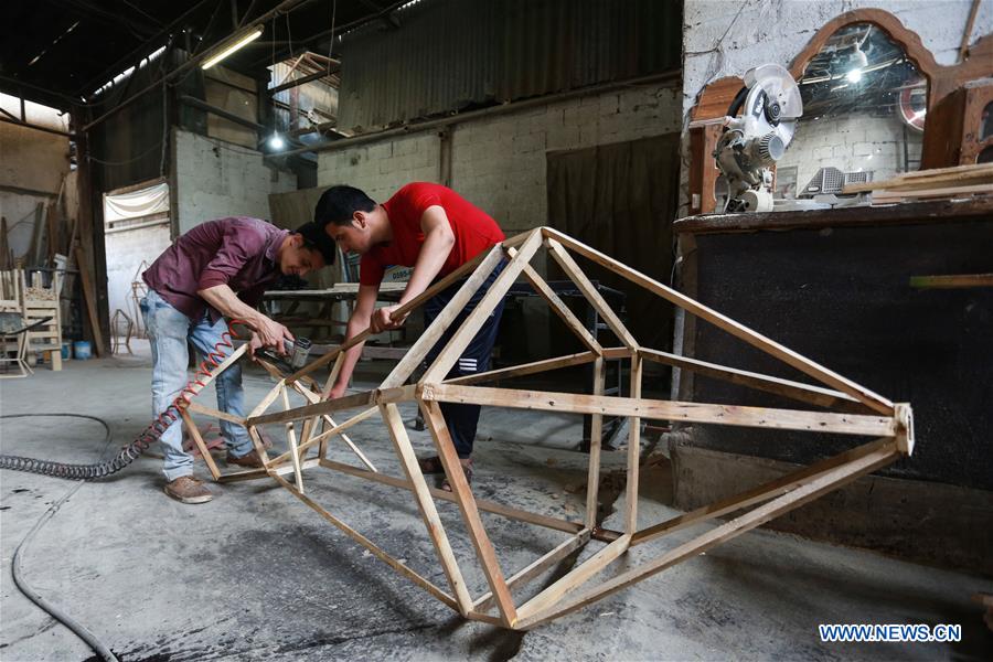Palestinian carpenters make a wooden lantern for sale in the upcoming holy month of Ramadan, in Gaza City, on May 2, 2019. Muslims usually decorate their houses with lanterns and crescents in Ramadan, the holiest month in the Islamic calendar. (Xinhua/Stringer)