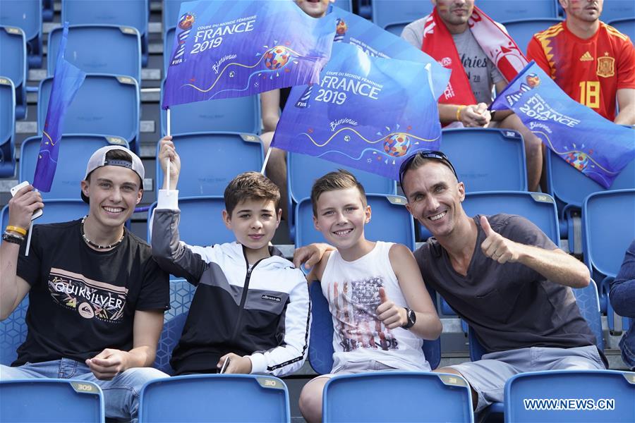 Fans wait for the start of the Group B match between China and Spain at the 2019 FIFA Women's World Cup at Stade Oceane in Le Havre, France, June 17, 2019. (Xinhua/Ding Xu)