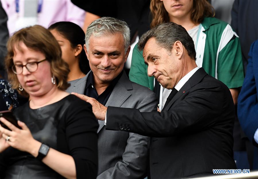 Former French president Nicolas Sarkozy (R) and Portuguese football manager Jose Mourinho watch the quarterfinal match between France and the United States at the 2019 FIFA Women's World Cup at Parc des Princes in Paris, France, June 28, 2019. The United States won 2-1. (Xinhua/Mao Siqian)