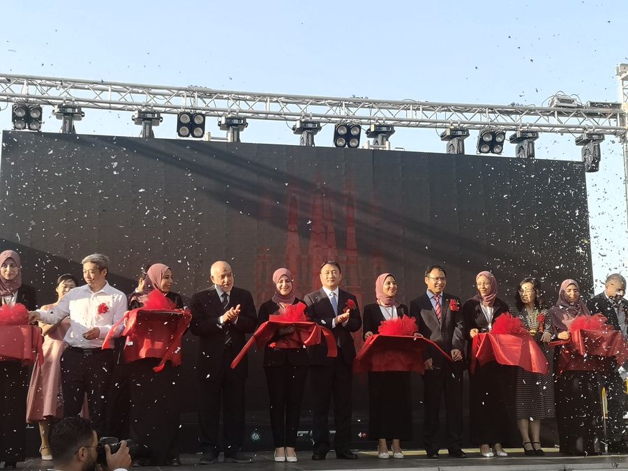 An inauguration ceremony is held in Gamasa, Daqahilya in northern Egypt for a Chinese fish feed production company on Oct. 18, 2019. (Xinhua/Wu Danni)