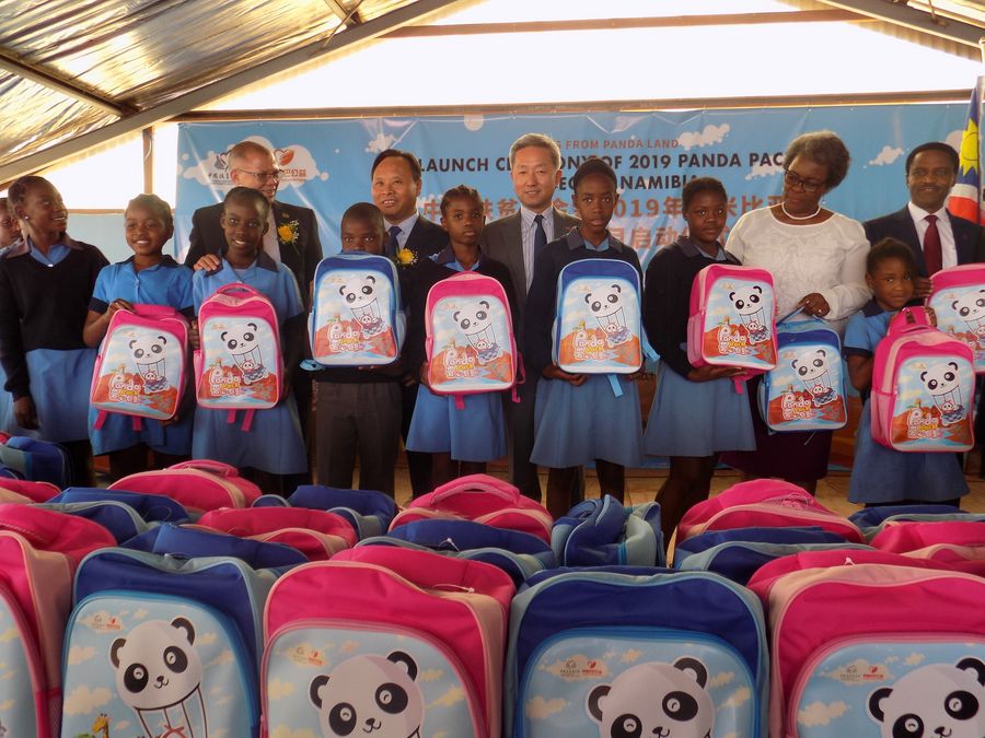 The China Foundation for Poverty Alleviation donates 40, 000 Panda Packs with stationery in Namibia. The donation helps the students who used to carry learning materials in plastic bags, conveys the Chinese people's kindness and will deepen the friendship between the two nations.