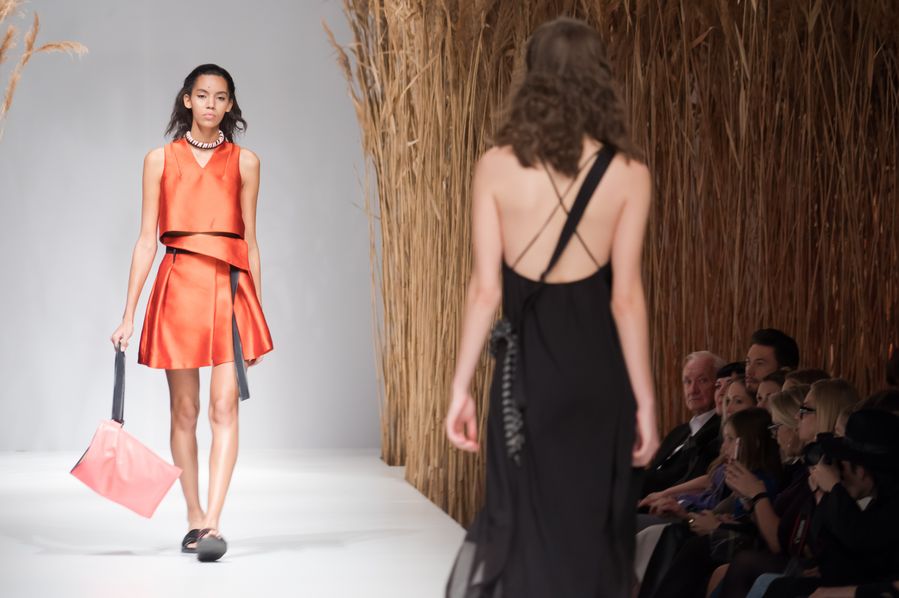 Models present creations of Hungarian fashion designer Viktoria Varga during a fashion show at the Marie Claire Fashion Days in Budapest, Hungary. (Photo by Attila Volgyi/Xinhua)