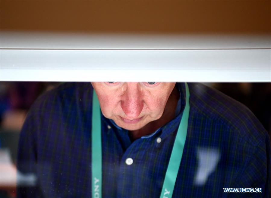 A man watches the exhibits during the 2020 Consumer Electronics Show (CES) in Las Vegas, the United States, Jan. 8, 2020. The world's premier tech show was officially launched on Tuesday in Las Vegas, the United States. More than 4,500 exhibitors joined the annual show with nearly 20,000 new transformative tech products, encompassing 5G connectivity, artificial intelligence, augmented and virtual reality, smart cities and resilience, sports, robotics and more. (Xinhua/Wu Xiaoling)