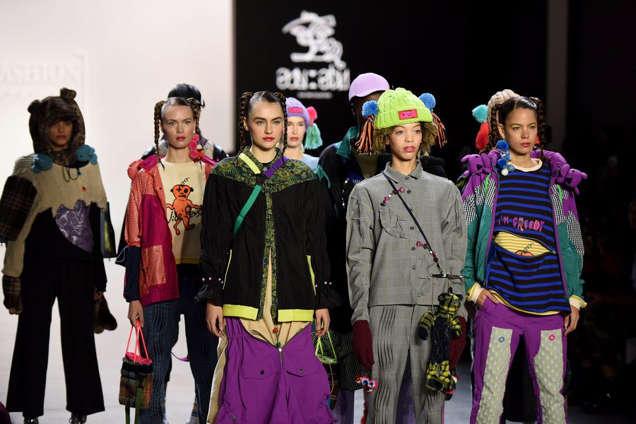 Models present creations of HEAVEN PLEASE+ during the Fashion Hong Kong runway show at New York Fashion Week Fall/Winter 2020 in New York, the United States, on Feb. 6, 2020. (Xinhua/Han Fang)