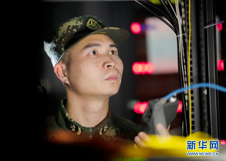 小小三尺機臺,系著戰場成敗。走進俞細文工作的地方,只見機柜林立、指示燈閃爍。正在值班的他,飛速敲動鍵盤,一組組數據被準確送達。