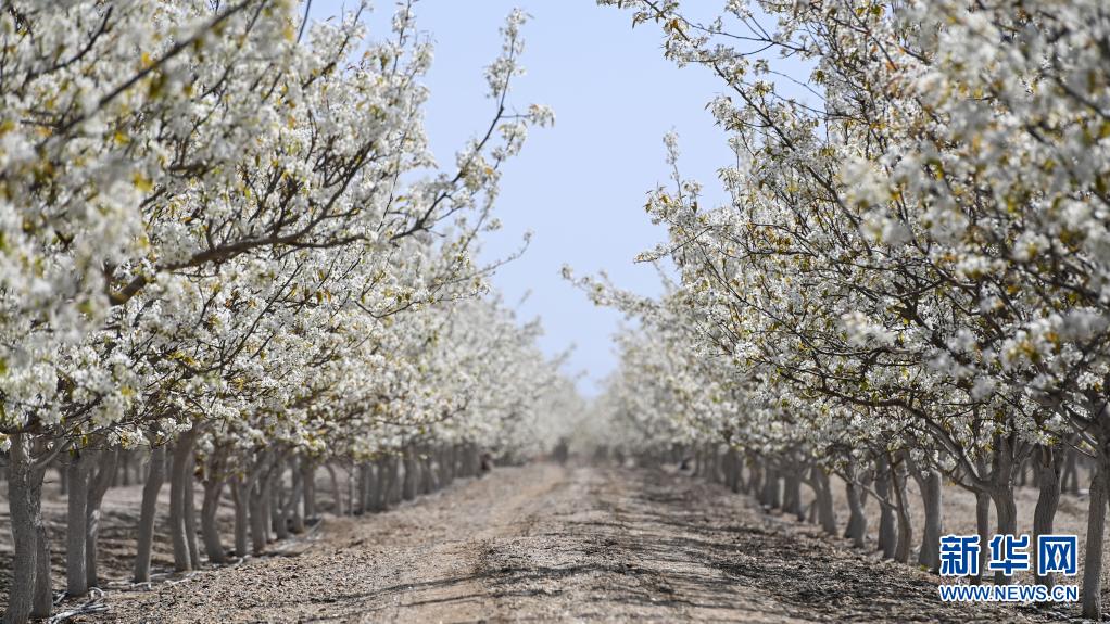這是4月11日在鐵門關市拍攝的一處梨園。新華社記者 丁磊 攝