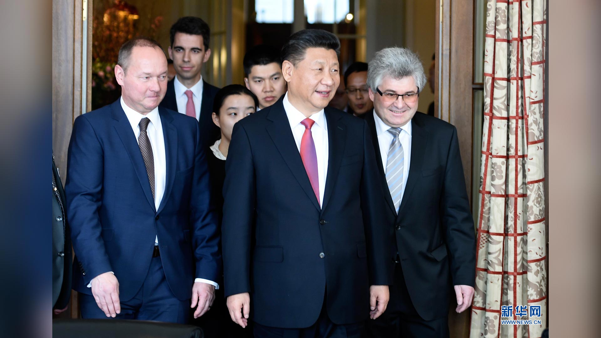 1月16日,國家主席習近平在伯爾尼會見瑞士聯邦國民院議長施塔爾和聯邦院議長比紹夫貝爾格。 新華社記者 張鐸 攝2017-01-17