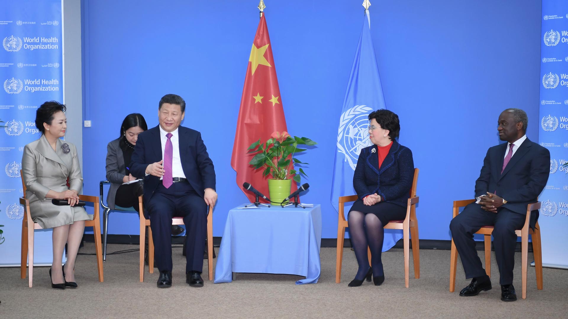 1月18日,國家主席習近平在瑞士日內瓦訪問世界衛生組織并會見陳馮富珍總干事。 新華社記者 吳曉凌 攝2017-01-19