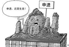 | 申遺的目的在于保護,而非開發。但各地熱衷申遺,更看重的是開發,為了申遺的政績和旅游大開發的價值,不少地方政府不惜血本,不甘人后。各地“申遺高燒”,無不是一種利益面前的瘋狂角逐,其實從側面投射出當下急功近利價值觀的“市場占有率”。 |
