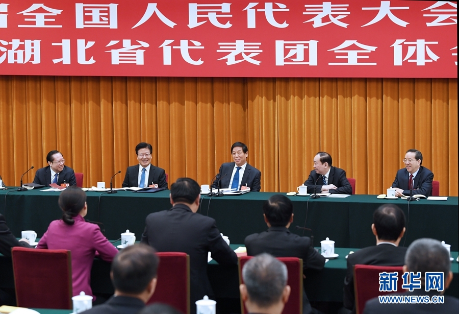 3月9日,中共中央政治局常委栗戰書參加十三屆全國人大一次會議湖北代表團的審議。 新華社記者 饒愛民 攝