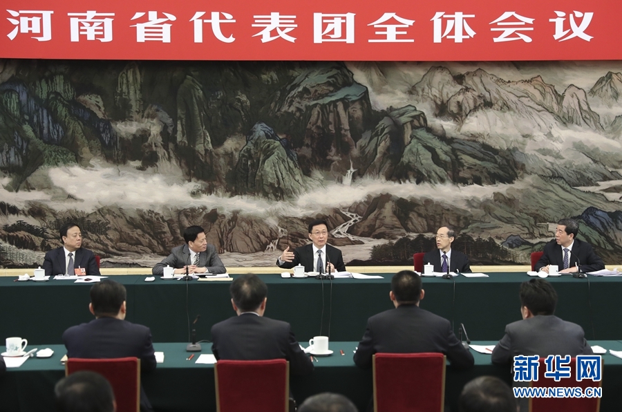 3月9日,中共中央政治局常委韓正參加十三屆全國人大一次會議河南代表團的審議。 新華社記者 丁海濤 攝