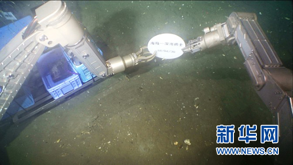 這是“海馬”號遙控潛水器拍攝的海底聯合工作過程。新華社發