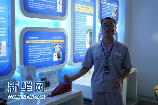 周苗生現場講解并展示技術改革成果(6月25日攝)。新華網 王頔攝