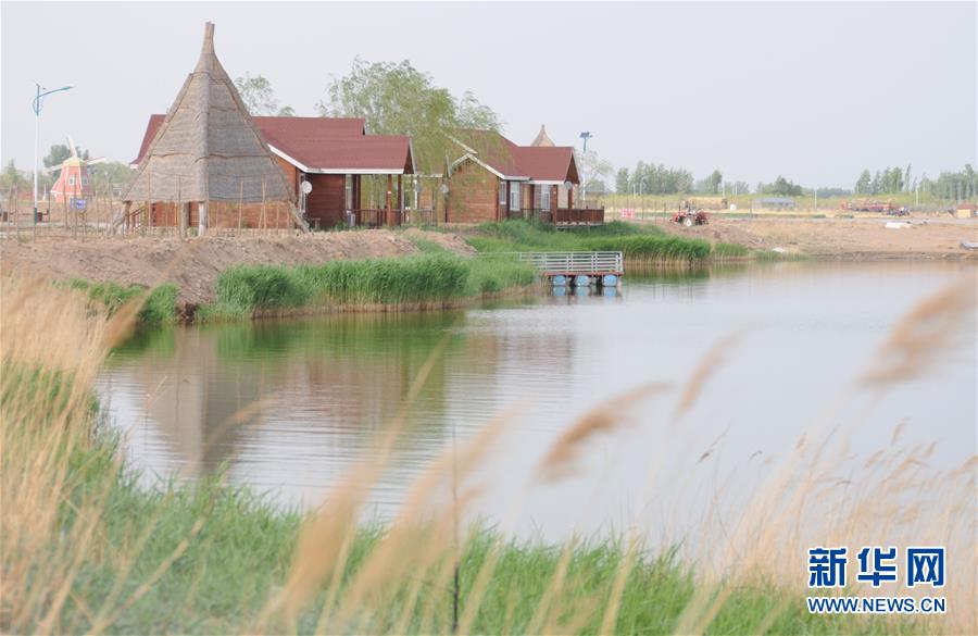 內蒙古磴口縣金馬湖水域面積增加近千畝,生態環境明顯改善(5月10日攝)。新華社記者 李云平 攝