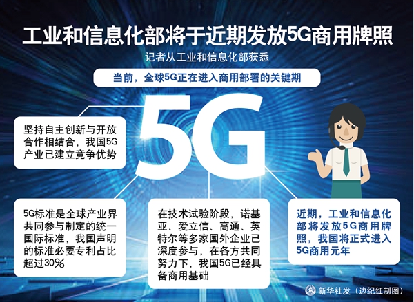 新華社北京6月3日電(記者張辛欣)記者從工業和信息化部獲悉,當前,全球5G正在進入商用部署的關鍵期。堅持自主創新與開放合作相結合,我國5G產業已建立競爭優勢。5G標準是全球產業界共同參與制定的統一國際標準,我國聲明的標準必要專利占比超過30%。在技術試驗階段,諾基亞、愛立信、高通、英特爾等多家國外企業已深度參與,在各方共同努力下,我國5G已經具備商用基礎。近期,工業和信息化部將發放5G商用牌照,我國將正式進入5G商用元年。我們一如既往地歡迎國內外企業積極參與我國5G網絡建設和應用推廣,共同分享我國5G發展成果。