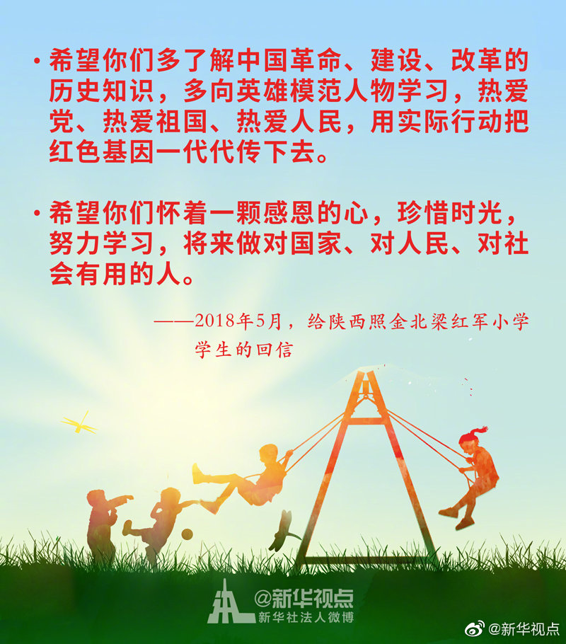 少年兒童是祖國的花朵,民族的希望。幼有所育,讓每一名少年兒童都能伴隨著時代的腳步茁壯成長,是全社會共同的心愿。習近平總書記始終關心少年兒童的身體健康和成長成才。黨的十八大以來,習近平總書記這樣說?
