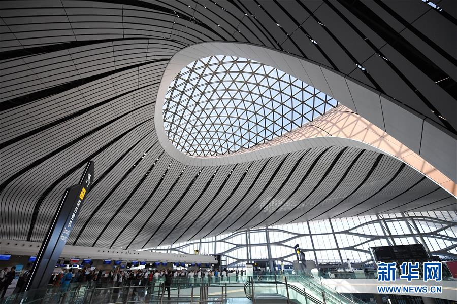 9月25日拍攝的北京大興國際機場航站樓內部。新華社記者 張晨霖 攝