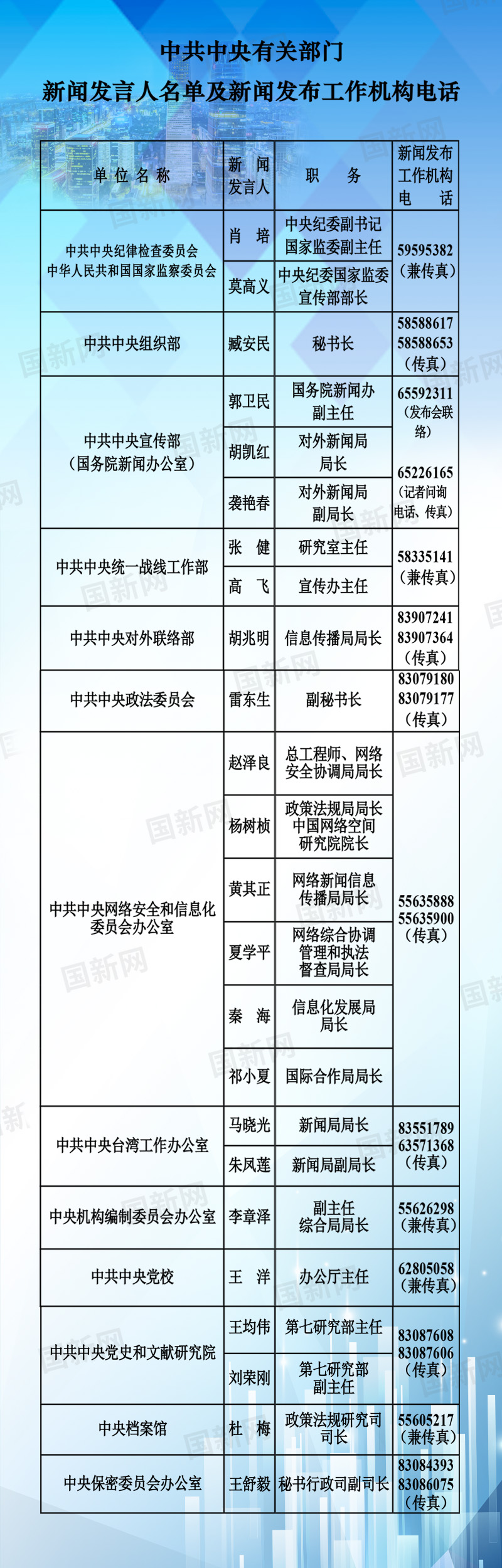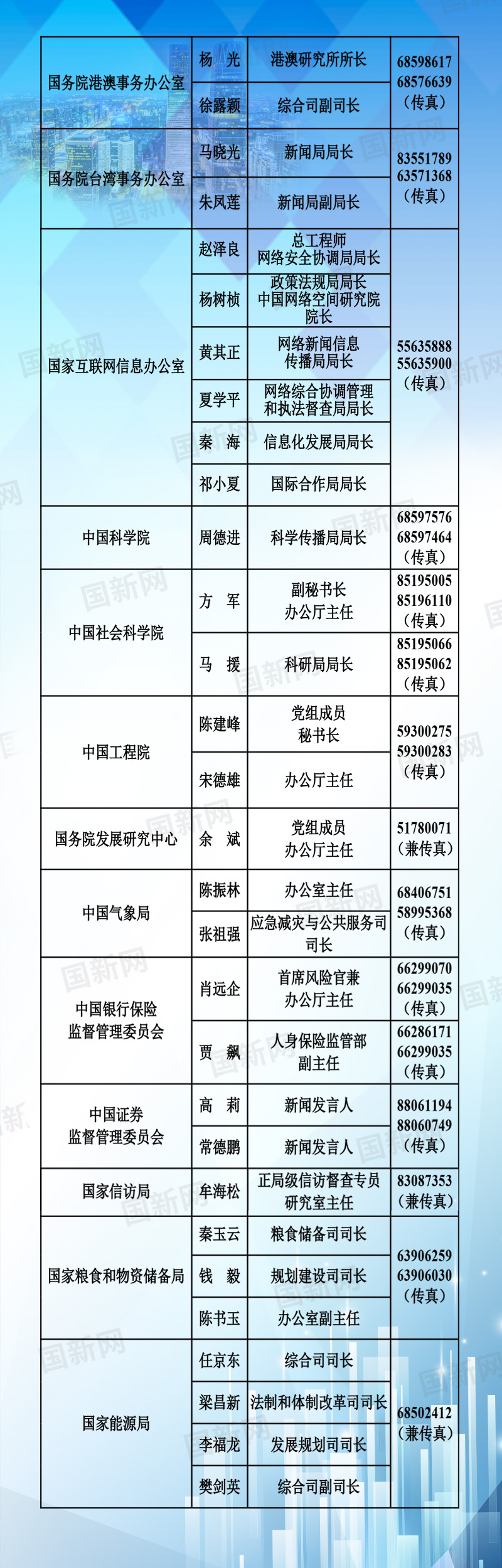 中央國家機關和地方2020年新聞發言人名錄-新華網