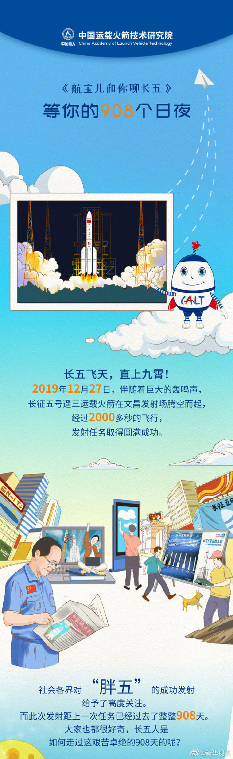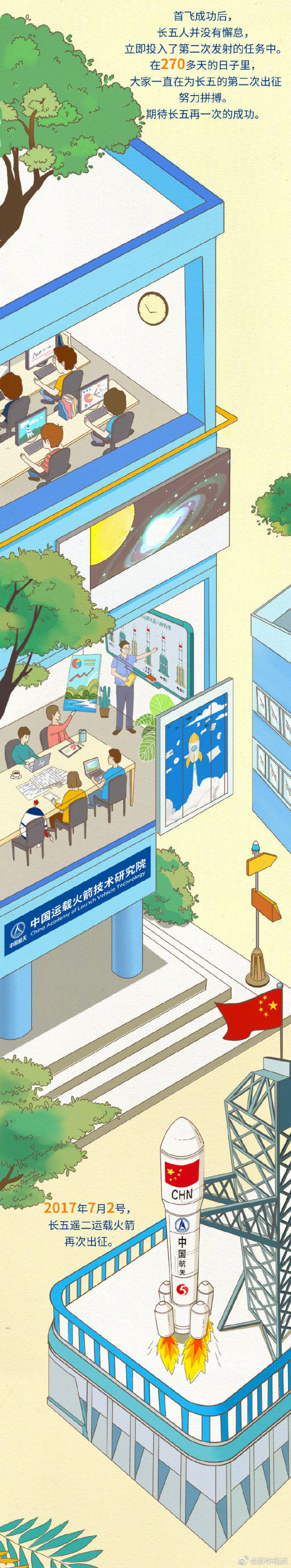 長征五號身后正是有一群航天人,他們數十年如一日,馴火牧天、攜山攬海,眼里盡是星辰和遠方。