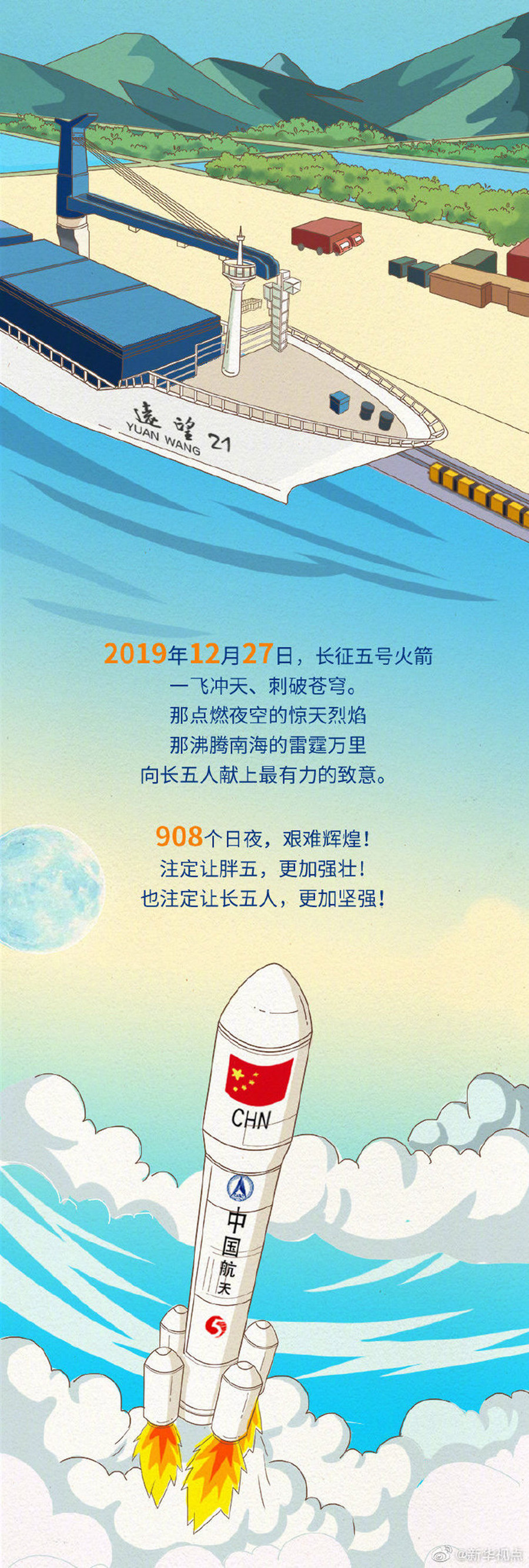 南海之濱,今夜無眠。長征五號再度啟航,承載著無數中國人的光榮與夢想,開辟了中國通往太空更加寬廣的天梯。