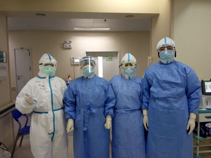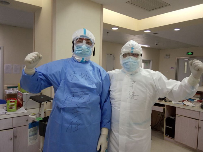 圖為北京天壇醫院楊燕琳與同事在武漢支援工作中。
