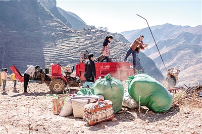 會澤縣易地扶貧搬遷的鄉親們在運送行李。